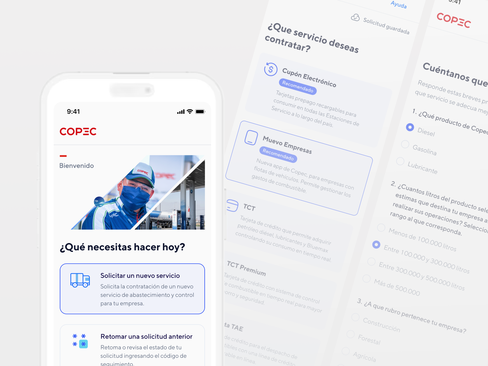 Requerimiento: La empresa COPEC necesitaba de un formulario web de contratación de servicios como gestionar gastos de combustible, tarjeta de crédito con sistema de control de combustible, abastecimiento en sitios industriales, tarjeta pre-pago, entre otros.