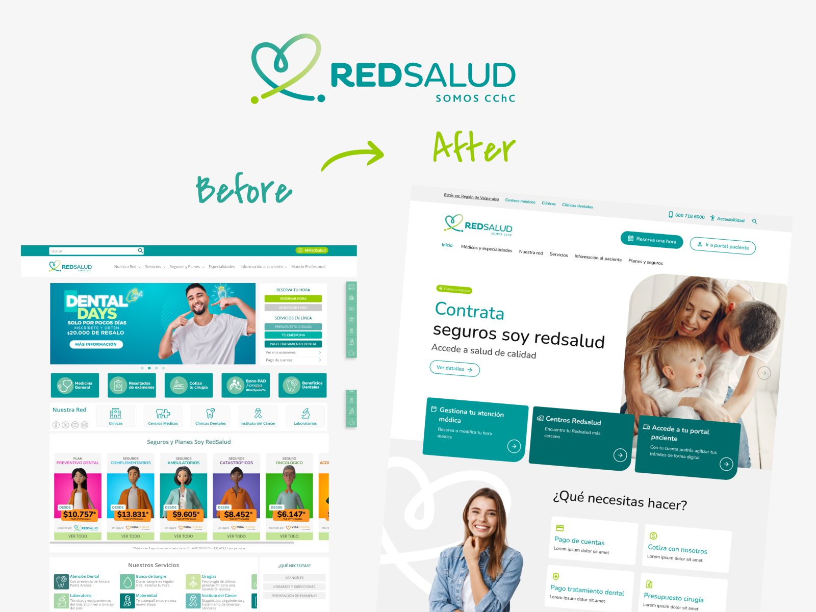 Rediseño y prototipo funcional de landing home para cliente Red Salud para licitación. Formatos desktop y mobile.